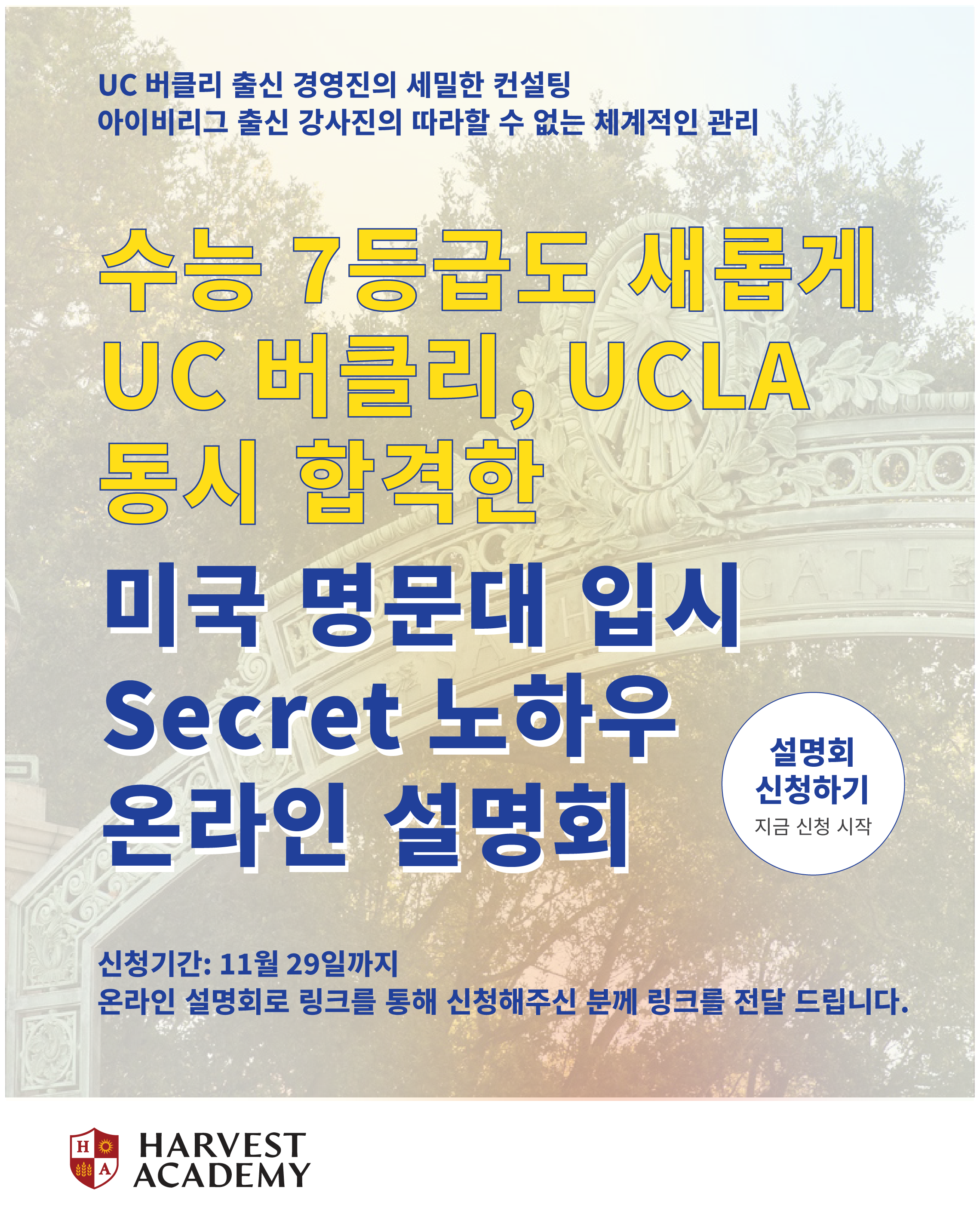미국 명문대 신입학/편입학 전문 하베스트 아카데미는 UC 버클리 출신 운영진의